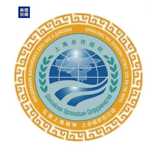 В самом центре круглого логотипа изображена эмблема ШОС, в окружности которой на трех языках - китайском, русском и английском - написан лозунг председательства Китая:"Продвижение Шанхайского духа: ШОС в действии".
